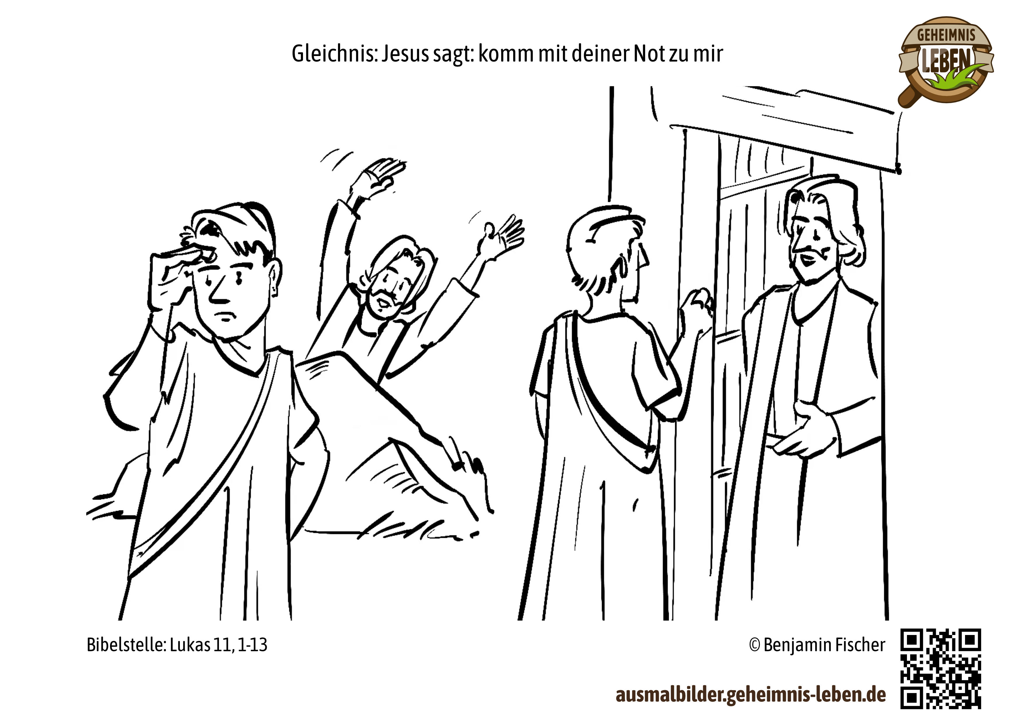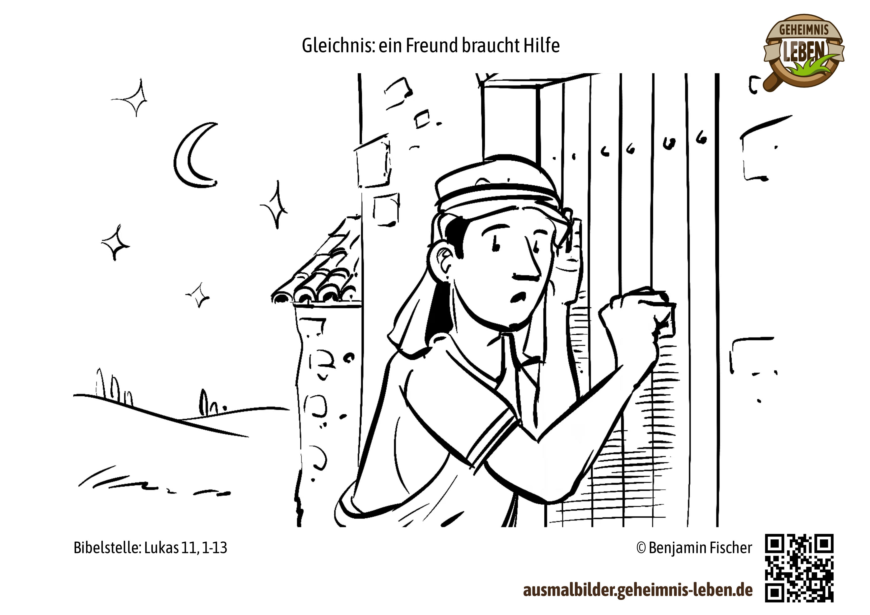 Lukas 111-13, Ausmalbilder Ein Freund klopft an und bittet um Brot