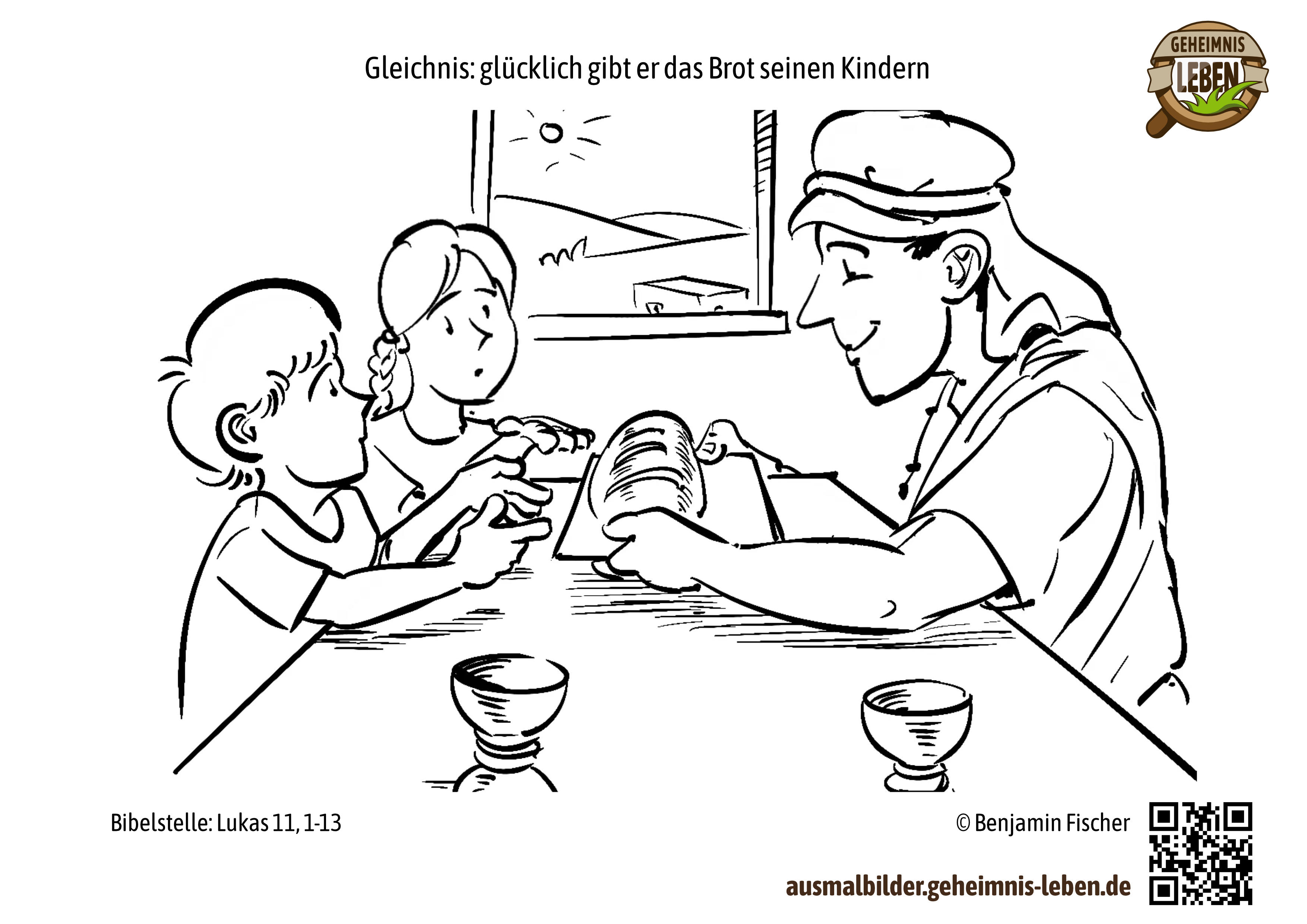 Gleichnis: glücklich gibt er das Brot seinen Kindern
