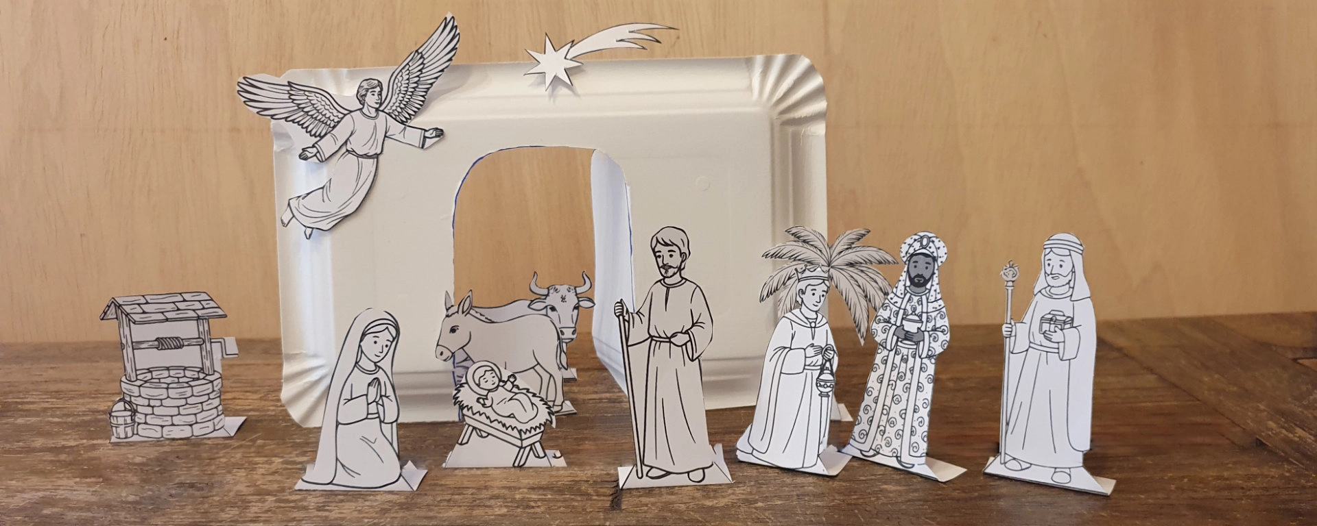 Lade den Bastelbogen herunter. Wir zeigen wir dir, wie du ganz leicht eine hübsche Weihnachtskrippe selbst basteln kannst. Das macht Spaß und ist gar nicht schwer!
